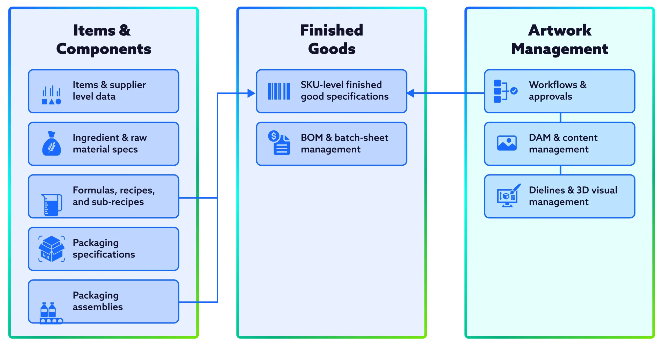 By linking formulas, packaging, and artwork, every stakeholder stays aligned and informed.