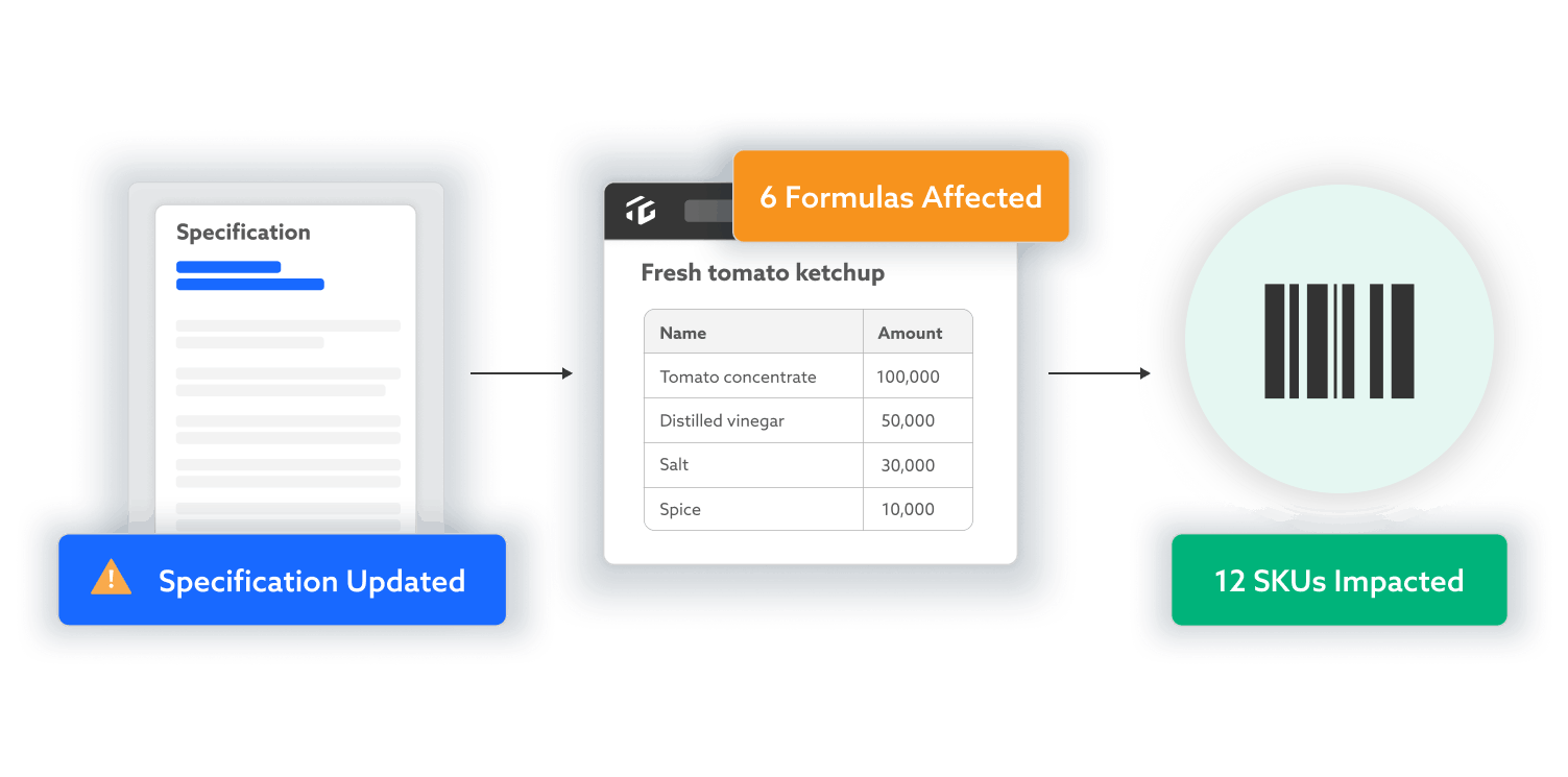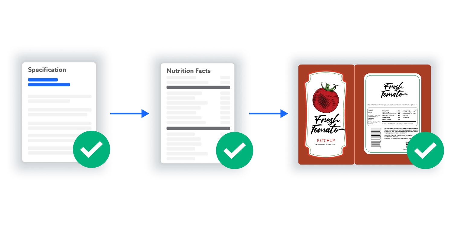 Unite ingredient and packaging specs, finished good specs, and artwork approvals in a single, dynamically connected system. Automate workflows, maintain traceability, and reduce mislabeling risks all from source to shelf.